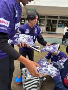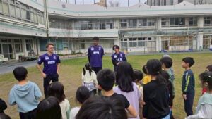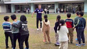 今回の「かけっこ」の先生はなんとサッカー選手!!赤井シャロッド裕貴選手、猪野毛日南太選手らが来校してくれました!!